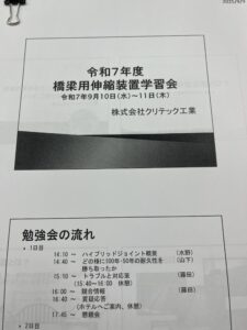今回使用さしていただく伸縮装置のメーカーさんの所で勉強さしていただきました。