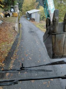 一般道路での重機の乗り入れは雨の日が狙い目です。摩擦抵抗が少なく路面を痛めにくいです。