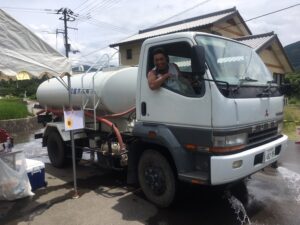 地域のボランティア活動に、参加したり(社長、散水車に乗る)