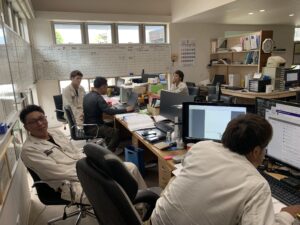 現在の本社事務所に、工務部も工部部リーダーも事務も、一緒に机を並べていました。