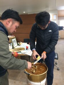 冬の除雪があるときには、事務所で炊き出しをしたり(社長兄弟、カレーにリンゴを入れてまぜる)