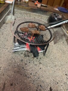 囲炉裏を囲んで肉を焼いてみたり、かまどでご飯を炊いてみたりと