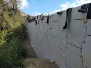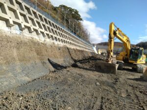 下請け業者の方の力をお借りして作業を完了する事が出来ました。現在はテールアルメの上に笠コンクリートの施工をしています。かなり高い位置での作業になるので転落などないよう作業して行きたいと思います。