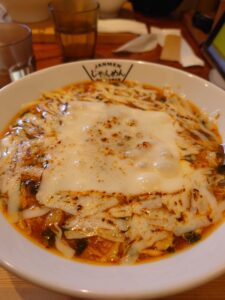 あっつあつです。コリコリぷりぷりのホルモンと2種類のチーズが美味しいです。毎回胃がはち切れそうな思いでいただいてます。