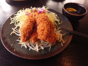 むらさきとんかつ。お醤油でいただくとんかつです。なかのレモンは絞った方が美味しかった!ヒレ肉がめっちゃ柔らかくてお箸で切れるくらい。美味しいに決まってるやつです。ここはオムライスもおすすめです。