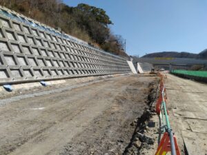 補強土壁も完了して、その上の笠コンも完了しました。