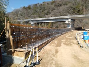 僕自体施工は初めてなので勉強させて頂いています。普段高速道路を使用していて橋など通る際に見ている擁壁ですがこんな形でこうなっていたとは気づきませんでした。施工をしながらしっかり勉強していきたいと思います。