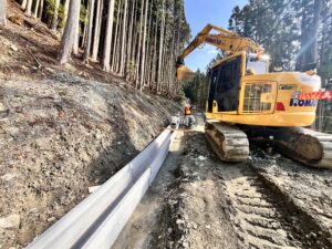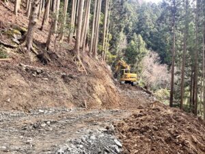 現在は12月から祖谷の堂の谷で管理用道路の施工をしてます。